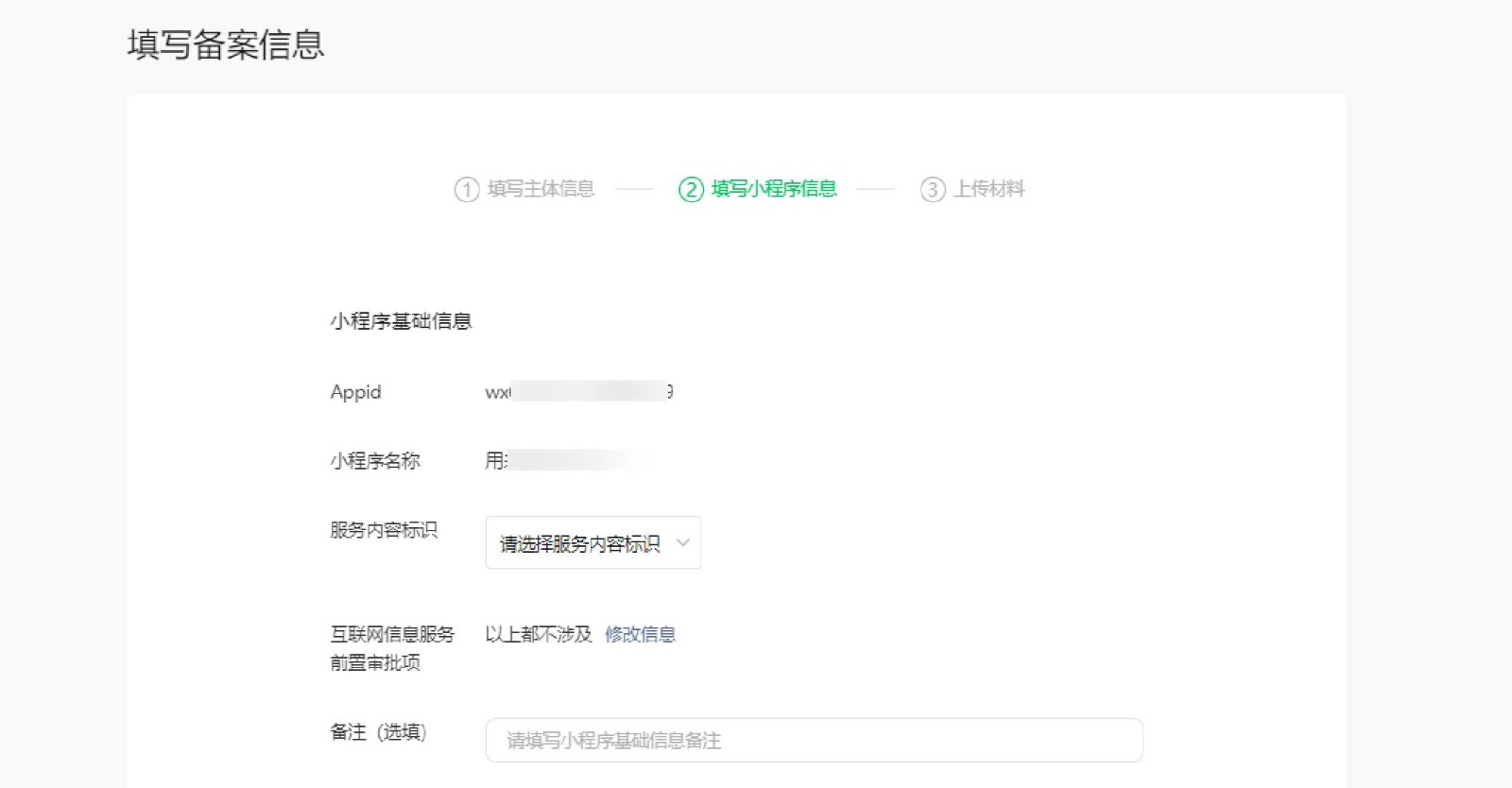 提示:如你的小程序內容涉及前置審批相關(guān)信息,請上傳有效前置審批文件并填寫(xiě)審批號/文件名。
