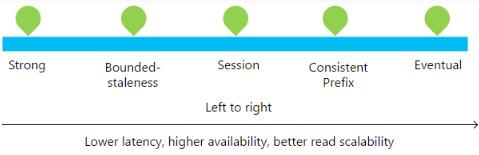 由于允許全局寫(xiě)入多主數據,因此一致性問(wèn)題變得非常重要。Cosmos DB 提供了五個(gè)一致性級別,從強一致性(讀取數據時(shí)始終返回文檔的最新版本)一直到最終一致性(提供非??斓淖x取和寫(xiě)入速度,但可能導致無(wú)序數據)。