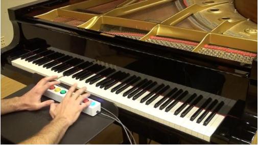 谷歌的這一靈感來(lái)源于音樂(lè )電子游戲《搖滾樂(lè )隊》和《吉他英雄》,其 Magenta 創(chuàng )意研究團隊在此基礎上進(jìn)一步創(chuàng )作,創(chuàng )造了一個(gè)智能控制器“鋼琴精靈”。用戶(hù)敲擊按鍵時(shí),它可以將其譯為使用所有 88 個(gè)鋼琴鍵而彈奏出的音樂(lè )。