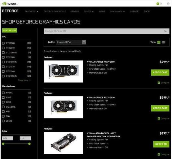 隨后,英偉達又將 RTX 2080Ti 的選購界面上線(xiàn),但依舊顯示缺貨。