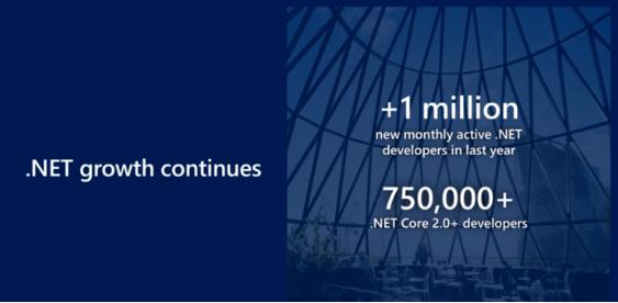 微軟在現場(chǎng)承諾,將在 .NET Core 上為這些框架做出貢獻。第一波代碼將于今天在 GitHub 上發(fā)布,未來(lái)幾個(gè)月將出現更多代碼。據最新數據,目前 GitHub 擁有 2800 萬(wàn)開(kāi)發(fā)者。