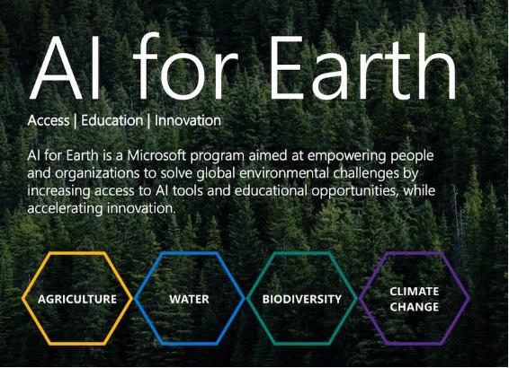 微軟于 2017 年 6 月啟動(dòng)的人工智能計劃已經(jīng)為數十家“保護地球”的組織提供了基于云的工具和人工智能服務(wù),承諾將在未來(lái)四年內投資 5000 萬(wàn)美元資助農業(yè),生物多樣性,資源保護,氣候變化和水資源等五個(gè)關(guān)鍵領(lǐng)域的人工智能開(kāi)發(fā)。日前,在華盛頓特區國家地理總部舉行的一次活動(dòng)中,微軟和國家地理雜志共同公布了 11 位人工智能地球創(chuàng )新獎的獲得者。