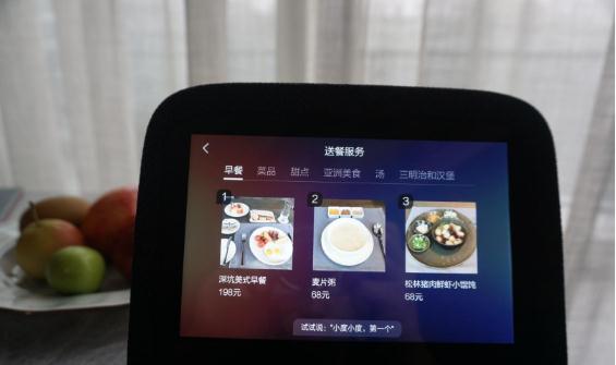 以上提到的每一項具體的服務(wù),后面都會(huì )有更詳細的選項,比如在叫餐環(huán)節,小度在家的屏幕上會(huì )依次呈現早餐、甜品、三明治漢堡等種類(lèi),并且圖文并茂展示出來(lái),此時(shí)你可以語(yǔ)音選擇或者直接用屏幕點(diǎn)擊的方式。
