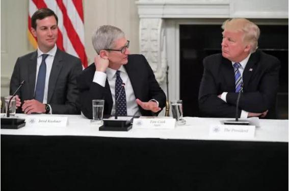 蘋(píng)果公司首席執行官蒂姆·庫克(Tim Cook,左)與美國總統唐納德·特朗普(Donald Trump)
