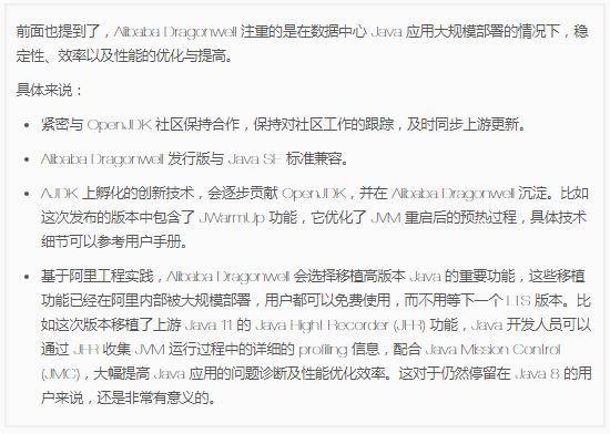 也就是說(shuō) Alibaba Dragonwell 會(huì )基于 OpenJDK 8 和 11?那么以后會(huì )更注重 Java 新特性的跟進(jìn)還是保證提供支持呢?對它今后的發(fā)展有什么設想或者目標?