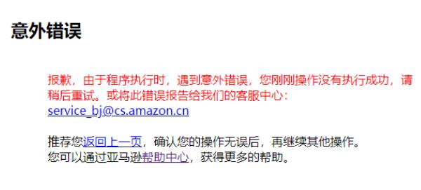 4 月 29 日下午消息,剛剛有網(wǎng)友發(fā)現,亞馬遜中國官網(wǎng)目前無(wú)法打開(kāi)。新浪科技嘗試進(jìn)入官網(wǎng),遇到“意外錯誤”提示。