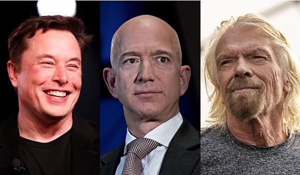圖1:從左到右,目前參加太空競賽的三大富豪分別為埃隆·馬斯克(Elon Musk)、杰夫·貝索斯(Jeff Bezos)和理查德·布蘭森(Richard Branson)