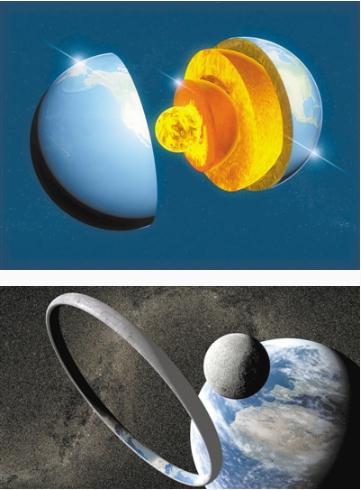 根據“最小勢能原理”,它會(huì )變成一個(gè)球。這時(shí)它的核心可能會(huì )因為高溫高壓而電離、熔融(地球就有一個(gè)固態(tài)內核和液態(tài)外核),產(chǎn)生更強大的能與引力相抗衡的電磁力,但不再是此前的化學(xué)鍵電磁力。在這個(gè)尺度,引力所起的作用和液滴的表面張力有點(diǎn)類(lèi)似,堅硬的巖石在它面前也變得如面團般柔軟,引力會(huì )把它塑造成為引力勢能最小的形狀——球形。