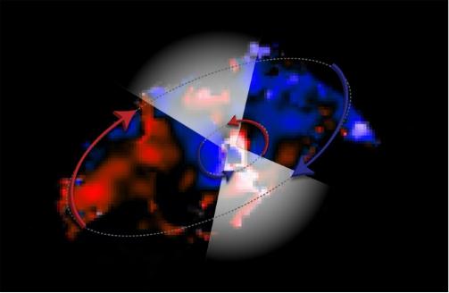 內氣體盤(pán)從黑洞延伸 2 到 4 光年,并沿與該星系自身旋轉相同的方向旋轉。但是,距離黑洞 4 到 22 光年的第二個(gè)氣體盤(pán)朝相反的方向旋轉。這一發(fā)現使天文學(xué)家感到驚訝。