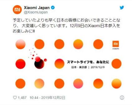 此前,小米公司高級副總裁王翔宣布將于 2020 年進(jìn)入日本智能手機市場(chǎng)的消息,今日,小米在推特發(fā)文稱(chēng),原定進(jìn)入日本市場(chǎng)時(shí)間提前。有消息稱(chēng),小米于本月 9 日發(fā)布將投入日本市場(chǎng)的智能手機和家電制品。