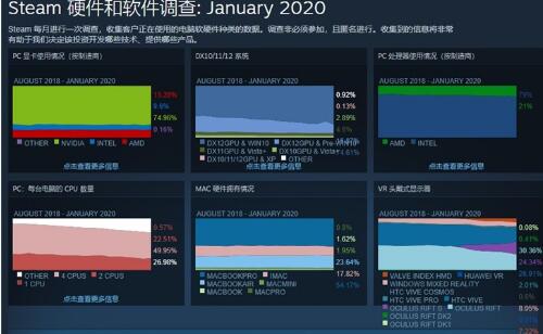 全球最大PC游戲平臺Steam發(fā)布了2020年1月份玩家軟硬件統計數據,披露了顯卡、處理器、系統等份額數據。