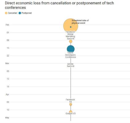 圖:因受疫情影響而推遲或被取消的科技盛會(huì )造成的經(jīng)濟損失不斷上升