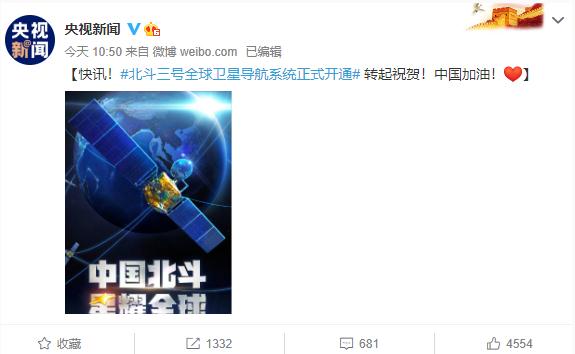 據央視新聞報道,7 月 31 日,北斗三號全球衛星導航系統正式開(kāi)通。