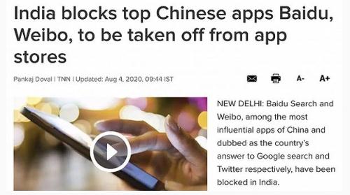 據《印度時(shí)報》報道稱(chēng),印度政府已要求該地區的谷歌和蘋(píng)果應用商店下架百度搜索和新浪微博。知情人士稱(chēng),印度互聯(lián)網(wǎng)服務(wù)提供商也已被要求禁用這兩款應用。