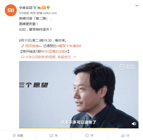 8 月 6 日消息,小米公司公布了小米創(chuàng )始人、小米集團董事長(cháng)兼 CEO 雷軍的“麻辣問(wèn)答”第二期。