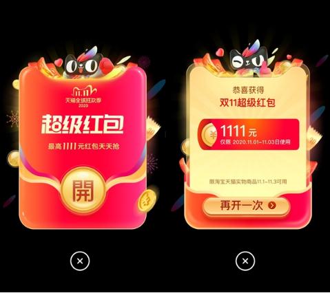 紅包面額:最大面額 1111 元,其他以實(shí)際到賬為準。