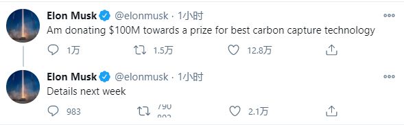 1 月 22 日消息,當地時(shí)間周四晚些時(shí)候,特斯拉首席執行官埃隆·馬斯克(Elon Musk)通過(guò) Twitter 宣布,自己將“捐贈 1 億美元,用于獎勵最佳的碳捕獲技術(shù)”。馬斯克計劃于下周提供相關(guān)細節,這是其應對氣候變化的最新舉措。