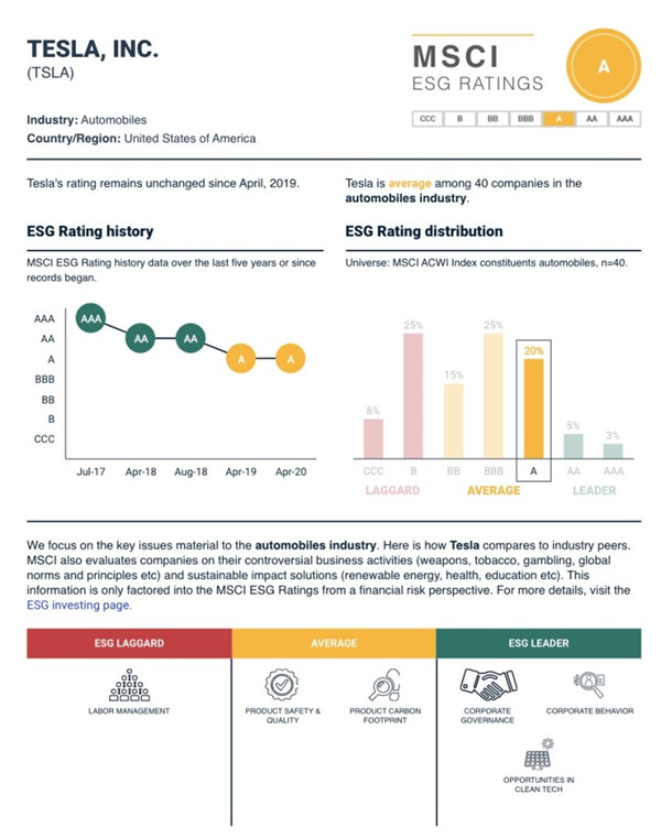 最關(guān)鍵的是,發(fā)展到這一階段,馬斯克需要關(guān)注大型機構投資者的看法,炒作比特幣的行為令很多機構感到反感。同時(shí),在碳中和的背景下,全球機構都在為投資組合“減排”。特斯拉之所以ESG評級高,就是因為“清潔科技的機會(huì )”這一項的助力,或許馬斯克如今并不想讓比特幣來(lái)拖后腿。