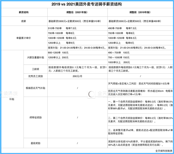 全天候科技還發(fā)現,調整后的美團外賣(mài)商家技術(shù)服務(wù)費抽傭比例、公里起步價(jià)、3公里以上每公里收費等指標,不同地區存在一定差異。