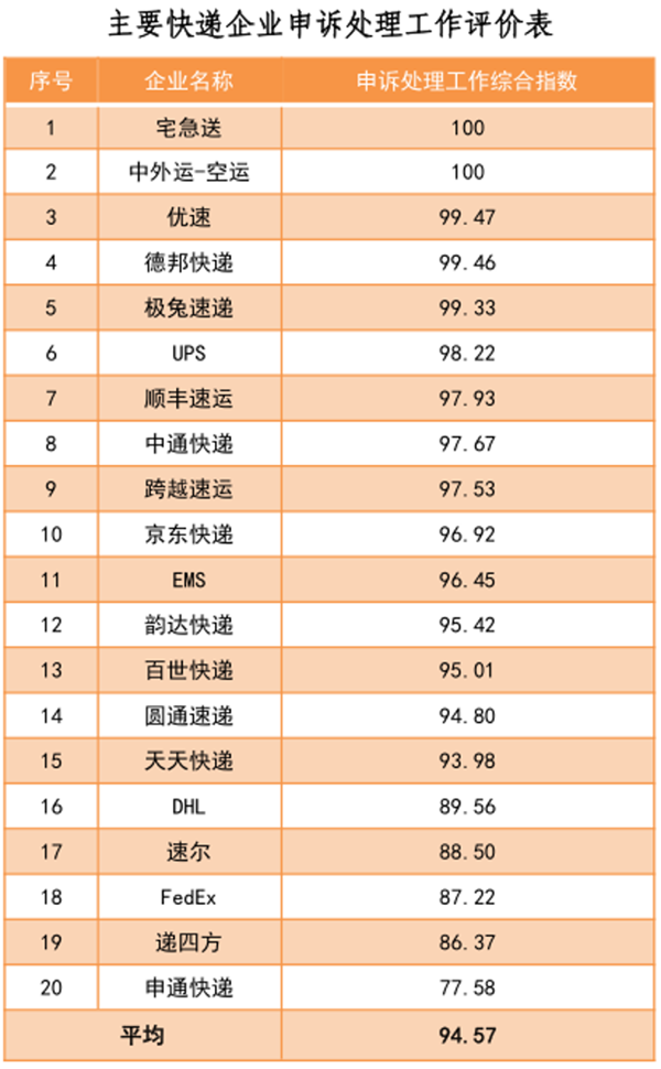 國家郵政局公布的5月郵政業(yè)用戶(hù)申訴情況通告顯示,中國郵政(EMS)申訴處理工作綜合指數高于韻達快遞、百世快遞、圓通快遞、天天快遞、申通快遞等。