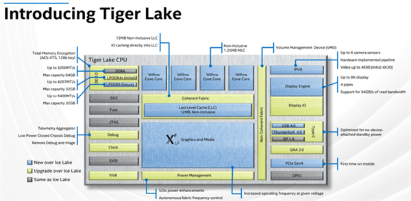 不過(guò),查看英特爾最新的 Tiger Lake SoC 的框圖(下圖),就會(huì )發(fā)現 Tiger Lake 與 M1 一樣是多加速器 SoC,這實(shí)際上也是去年技術(shù)分析師稱(chēng)贊 Tiger Lake 的亮點(diǎn)之一: