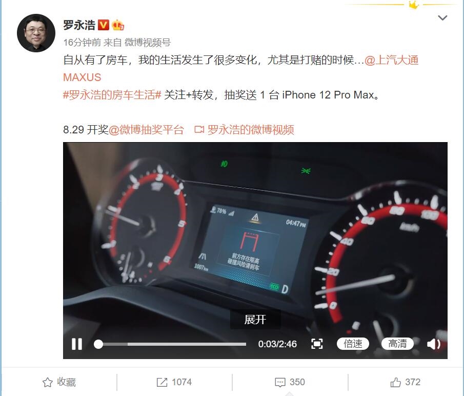 而羅永浩因商務(wù)差旅需要,每年要乘坐 100 多趟飛機,限制高消費使得遠途交通成了一個(gè)問(wèn)題,為此羅永浩招商房車(chē)品牌。