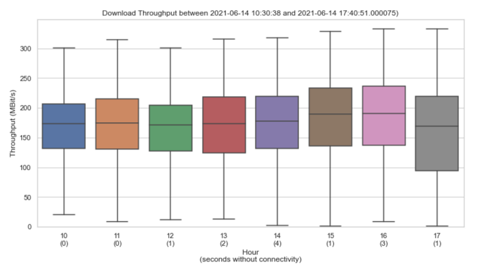 七小時(shí)下行速度測試箱線(xiàn)圖