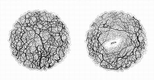 ▲在螞蟻挖隧道之前,土壤顆粒之間的力鏈是隨機排列的(左),但當螞蟻挖隧道后,力鏈會(huì )重新排列。