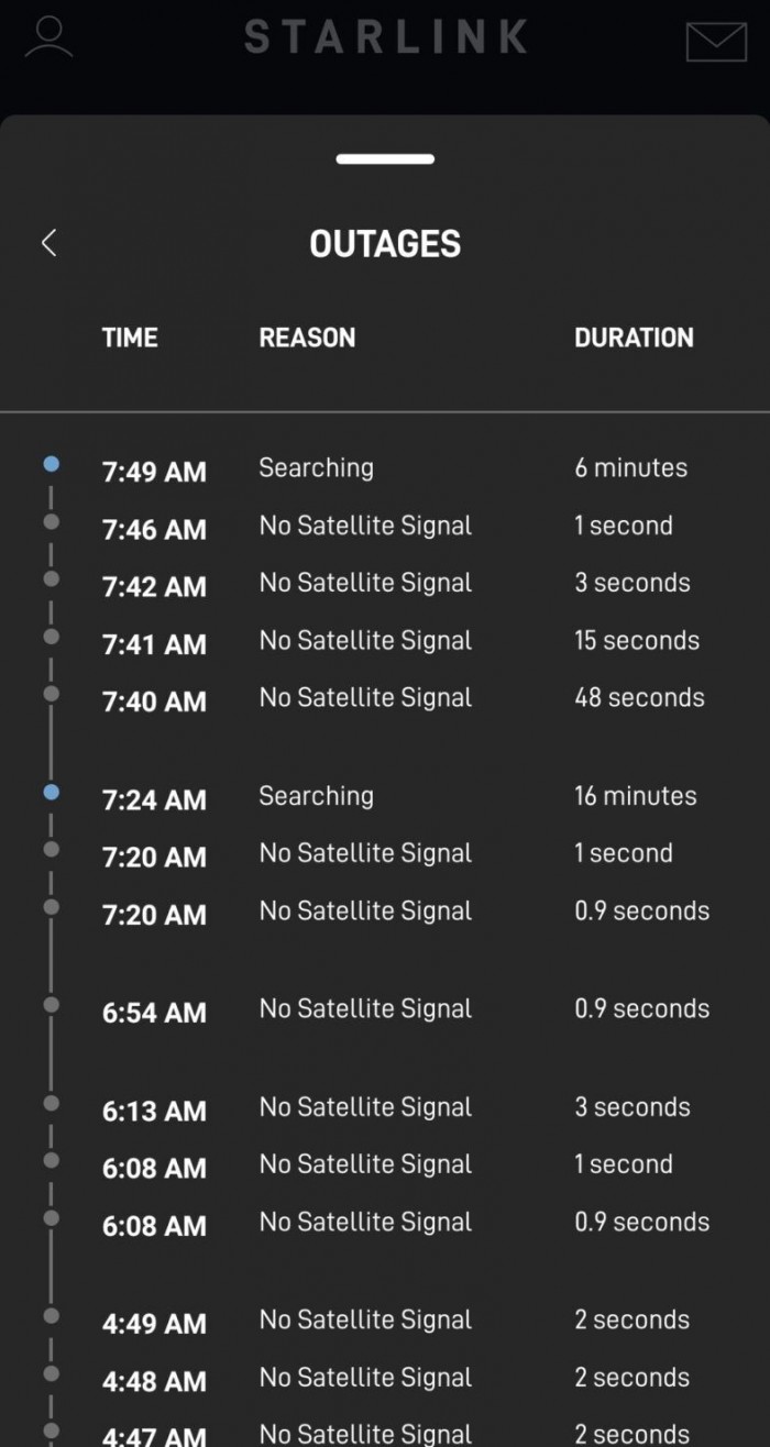 并非所有 Starlink 用戶(hù)都反饋存在故障,一些用戶(hù)報告說(shuō)服務(wù)順利,而其他早些時(shí)候面臨故障的用戶(hù)現在報告說(shuō)他們的服務(wù)工作正常。這次故障似乎是在 12 個(gè)小時(shí)前開(kāi)始的,并在美國時(shí)間今天凌晨加劇。據 Reddit 用戶(hù) godch01 稱(chēng),到目前為止,我們設法接觸到的第一份關(guān)于這一憤怒的報告發(fā)生在美國東部時(shí)間今天 4:29。據他說(shuō),這次中斷持續了 8 分鐘,之后他的服務(wù)開(kāi)始正常工作。