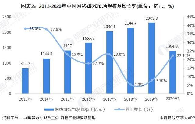 2020 年上半年,受疫情影響,我國網(wǎng)絡(luò )游戲市場(chǎng)規模增速明顯提升。