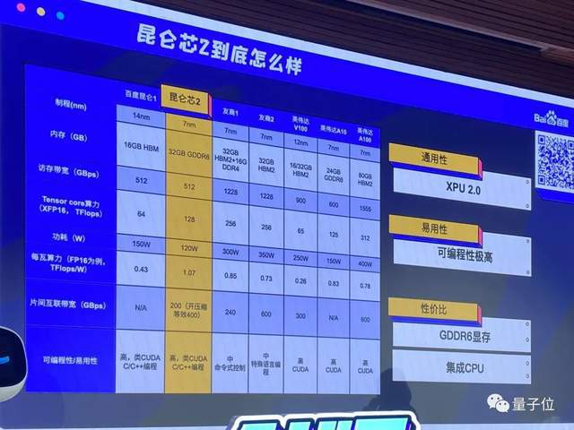 7nm 制程、百度自研 2 代 XPU 架構,每瓦算力1. 07TFlops,支持 NLP、視覺(jué)、語(yǔ)音等各種類(lèi)型算法,能做推理也能做訓練;同時(shí)支持C和 C++ 編程。