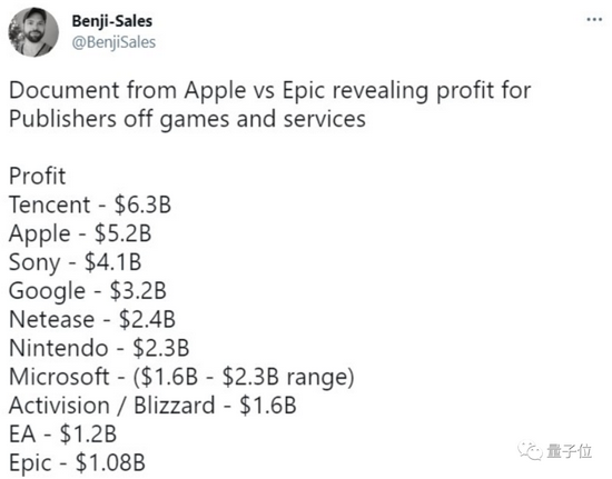 但從游戲分析師@Benji-Sales 公布的數據來(lái)看,蘋(píng)果公司的游戲利潤同樣排在全球前列。