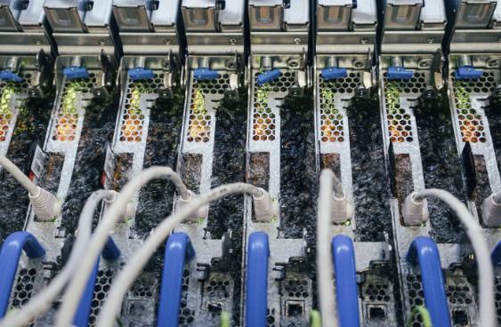 但是,微軟在沙漠地區的數據中心,在那里缺水是一個(gè)更大的問(wèn)題。為了使其在這些炎熱和干燥的氣候中的水足跡降至零,微軟計劃采用一種新的方式來(lái)冷卻服務(wù)器,即將它們浸泡在基于碳氟化合物的液體中。當服務(wù)器工作時(shí),它們產(chǎn)生的熱量使液體在達到華氏 122 度(攝氏 50 度)時(shí)沸騰。沸騰的液體將熱量從服務(wù)器上移開(kāi),然后變成上升的蒸氣。蒸汽碰到冷卻的水箱蓋子,凝結,然后降回水箱中。這個(gè)過(guò)程被稱(chēng)為兩相液體浸泡,創(chuàng )造了一個(gè)閉環(huán)冷卻系統,減少了水和電的使用,同時(shí)得到了冷卻效果。