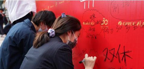 11 月 18 日,格力電器舉行 30 周年慶典。在慶典上,不少員工在 30 周年簽名墻寫(xiě)上周末能“雙休”的心愿。