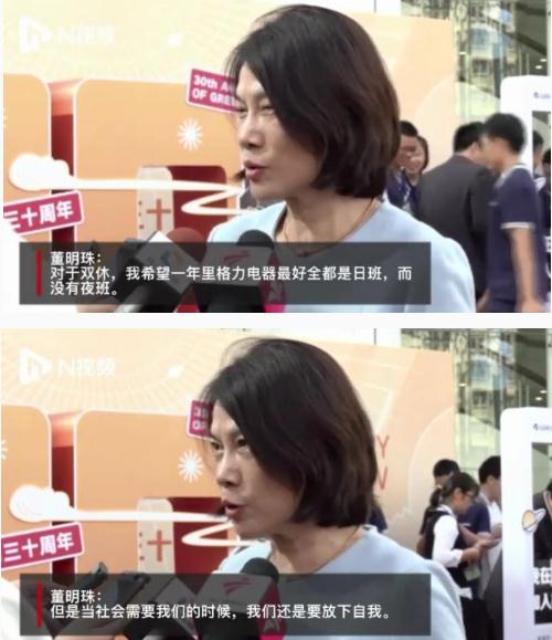 據了解,11 月 18 日,格力電器舉行 30 周年慶典。在慶典上,不少員工在 30 周年簽名墻寫(xiě)上周末能“雙休”的心愿。當時(shí)董明珠回應:“對于雙休,我希望一年里格力電器最好全都是日班,而沒(méi)有夜班。但是當社會(huì )需要我們的時(shí)候,我們還是要放下自我。”