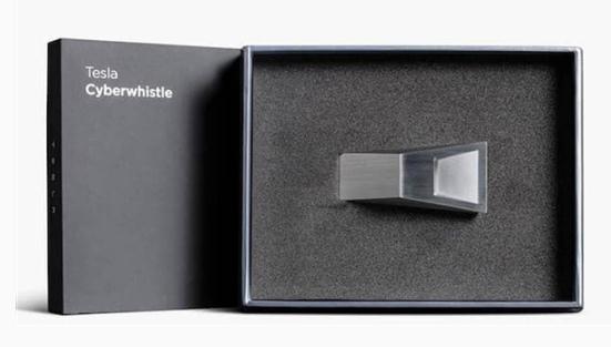 按照特斯拉官方說(shuō)法,此哨子名為 Cyber whistle,設計受 Cyber truck 皮卡的啟發(fā),是一款優(yōu)質(zhì)的收藏品,由經(jīng)過(guò)拋光處理的醫用級不銹鋼制成。