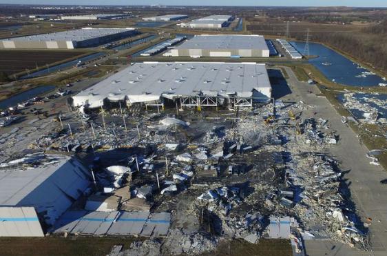 伊利諾伊州科林斯維爾緊急事務(wù)管理局發(fā)布在 Facebook 主頁(yè)上的帖子稱(chēng),坍塌是一起“大規模傷亡”事件。它后來(lái)發(fā)布了張最新的事件善后照片,顯示倉庫的很大一部分被龍卷風(fēng)完全摧毀。據當地媒體報道,亞馬遜五年前在愛(ài)德華茲維爾開(kāi)設了這個(gè)倉庫,占地接近 14 萬(wàn)平方米。