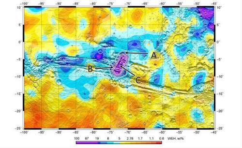 研究人員表示,此前火星上發(fā)現的水大多是在極地區域,而這次能在赤道附近地表一米以下發(fā)現富含水的“綠洲”,要歸功于微量氣體軌道飛行器上的高分辨率超熱中子探測器(FREND)。通過(guò)進(jìn)行中子通量測繪,更多之前未被探測到存在水的區域可能會(huì )顯現出來(lái)。