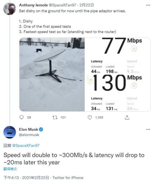 馬斯克本人在今年二月在社交媒體上曾表示,星鏈網(wǎng)絡(luò )的速度有望在今年晚些時(shí)候翻倍至 300Mbps,而延遲則會(huì )低于 20ms。而在星鏈官網(wǎng)的描述中,也包含“大多數區域的用戶(hù)可以期待下行速度在 100-200Mbps 之間”這樣的描述。按照這個(gè)標準,不管是馬斯克還是公司,相關(guān)的承諾都未達成。