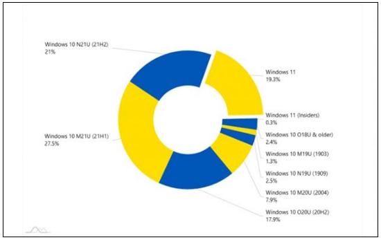 調研機構AdDuplex給出的最新數據顯示,Windows 11現在已經(jīng)在19.3%的PC上安裝,還有0.3%的PC在運行Insider版本,其增速并沒(méi)有放緩。