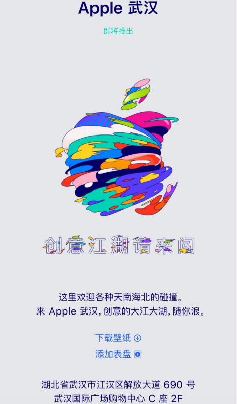 武漢首家蘋(píng)果 Apple Store 零售店出現在了蘋(píng)果官網(wǎng),口號為“創(chuàng )意江湖請來(lái)闖”,顯示“即將推出”。