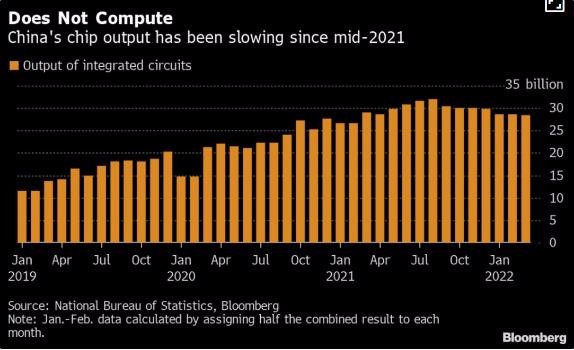 據彭博社報道,中國半導體季度產(chǎn)量自 2019 年初以來(lái)首次出現萎縮,主要原因是消費電子產(chǎn)品需求疲軟以及包括上海在內的地區因新冠疫情引發(fā)的封鎖中斷了產(chǎn)量。