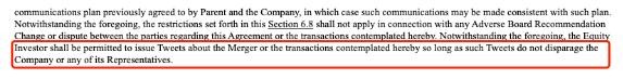 這份新文件介紹了馬斯克收購推特的細節,其中一個(gè)名為“公告”的部分對馬斯克發(fā)布的推文內容進(jìn)行了限制。馬斯克是推特上的一名多產(chǎn)用戶(hù),在收購交易的籌備和后續階段,他發(fā)布了數十條推文。