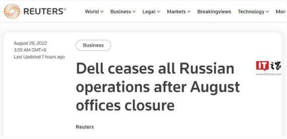 據路透社報道,戴爾科技公司周六表示,在 8 月中旬關(guān)閉其辦事處后,它已停止在俄羅斯的所有業(yè)務(wù)。
