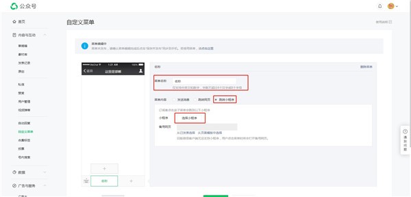 微信公眾號自定義菜單如何添加小程序