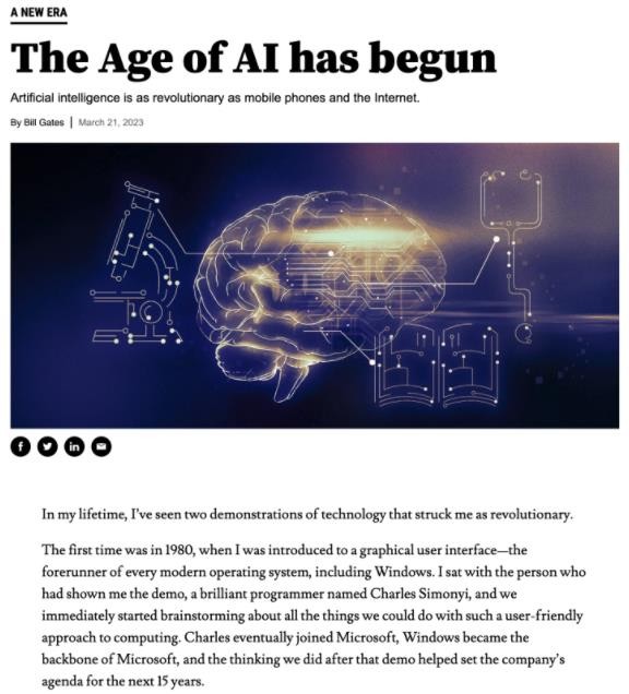 “整個(gè)經(jīng)歷令人震驚。我知道,我剛剛看到了自圖形用戶(hù)界面以來(lái)最重要的技術(shù)進(jìn)步,”蓋茨表示,“人工智能的發(fā)展與微處理器、個(gè)人電腦、互聯(lián)網(wǎng)和移動(dòng)電話(huà)的誕生一樣重要。它將改變人們工作、學(xué)習、旅行、獲得醫療保健以及彼此交流的方式。整個(gè)行業(yè)都將圍繞它重新適應。企業(yè)將通過(guò)如何使用它來(lái)區分自己。”