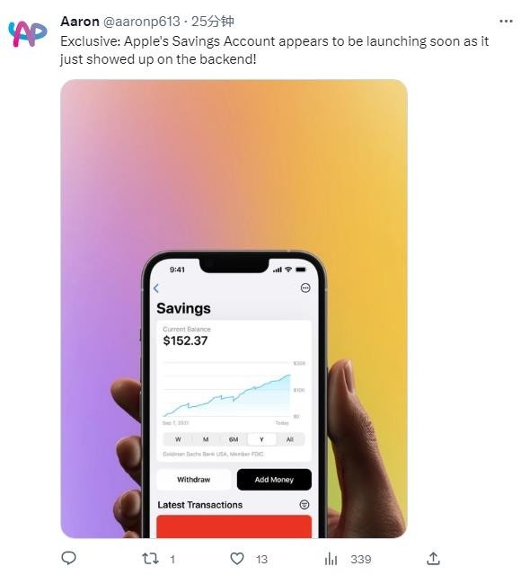 彭博社馬克?古爾曼在今年 3 月的推文中稱(chēng),蘋(píng)果已在 Apple Card 條款中添加了“Apple Card Savings”功能的相關(guān)描述,表明這項蘋(píng)果版“余額寶”功能即將上線(xiàn)。
