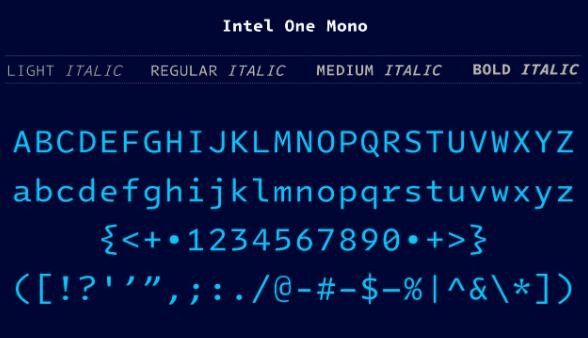 英特爾開(kāi)源了一款面向開(kāi)發(fā)者的新等寬字體 “ Intel One Mono ”,這是一種富有表現力的等寬字體系列,集清晰度、易讀性和開(kāi)發(fā)者視力保護于一體。