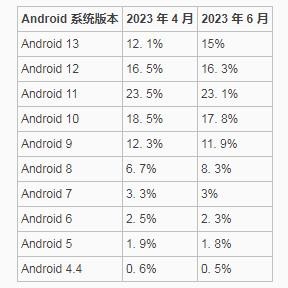 近日,Google 在 Android Studio 中更新了 2023 年 6 月份的 Android 各系統版本占比的統計數據。