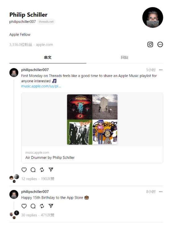 該媒體日前在 Threads 平臺上發(fā)現了名為 PhilSchiller007 的賬號,自稱(chēng)是蘋(píng)果院士菲爾?席勒。